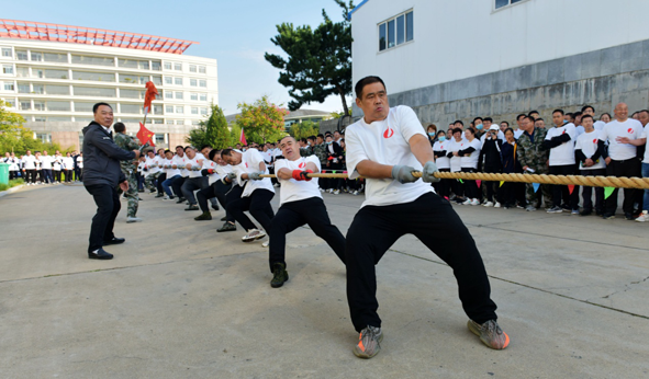 上午8點,展現(xiàn)團隊綜合硬實力的傳統(tǒng)集體項目——男女拔河比賽首先拉開序幕。金潮集團一隊、二隊,金潮股份新材、蓄電池、地產(chǎn)、建工、招和等14支男女拔河隊通過抽簽分組,展開了緊張、激烈的鏖戰(zhàn)。比賽雙方或?qū)嵙沂?,參差不齊;或勢均力敵,旗鼓相當。粗大的麻繩被巨大的合力拔來拔去,互不相讓,進入膠著狀態(tài),有的參賽隊由于用力過猛,在巨大的慣性作用下,隊員不慎摔倒,但他們?nèi)跃o握大繩不放,充分展示了金潮人“團結(jié)拼搏、善于奪魁,挑戰(zhàn)自我、追求極致”的“精氣神”?!凹瘓F隊,加油!集團隊,加油!”,“蓄電隊,加油!蓄電隊,加油!”。 此起彼伏的吶喊助威聲如排山倒海一浪高過一浪;不絕于耳的歡聲笑語在辦公樓前回聲嘹亮。參賽隊員和衷共濟擰成一股繩,演繹出一曲“力拔山兮氣蓋世,團結(jié)拼搏勇奪冠”的激昂樂章。經(jīng)過堅韌不拔的頑強拼搏,最終集團公司一隊、二隊以綜合實力領先的絕對優(yōu)勢,一路“攻城略地、過關斬將”分獲男子拔河冠亞軍;蓄電池公司女隊的實力也不容小覷,她們再次登上了拔河項目冠軍的“領獎臺”, 招和環(huán)保建材女隊獲得亞軍。