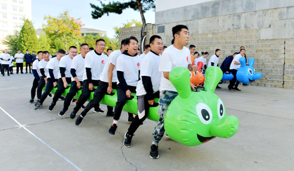 今年新增的趣味項目——毛毛蟲:比賽道具顏色亮麗,憨態(tài)可掬。參賽人員步調(diào)一致,配合默契,合力“駕馭”著這條“怪獸”奮力往前沖。經(jīng)過一番斗智斗勇的較量,比賽前三名相繼產(chǎn)生,他們依次是:地產(chǎn)公司、新材公司、集團一隊。