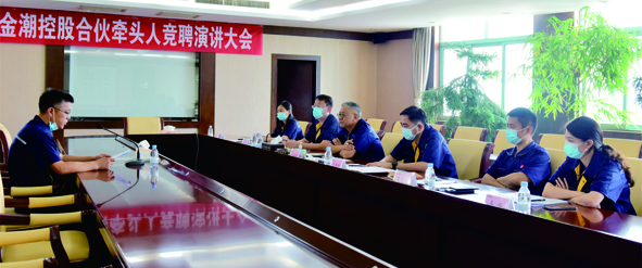 本報(bào)訊 8月2 日上午,金潮控股合伙牽頭人競聘演講大會在六樓會議室如期舉行。金潮控股執(zhí)行董事程紹華、輪值總裁苑永海、副總裁彭殿坤、總裁助理曹雪松,行政人事、財(cái)務(wù)中心負(fù)責(zé)人出席大會。