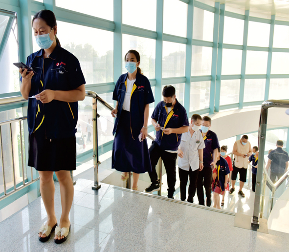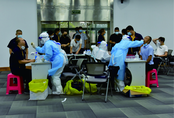 按照上級(jí)全員核酸檢測(cè)的總體部署和要求,金潮控股集團(tuán)在做好“德爾塔”毒株疫情防控知識(shí)宣傳、嚴(yán)格人員進(jìn)出登記信息、檢測(cè)體溫、重點(diǎn)區(qū)域環(huán)境消殺、落實(shí)全員新冠疫苗接種工作等常態(tài)化疫情防控的同時(shí),行政人事中心積極與大秦家街道有關(guān)部門溝通協(xié)調(diào),將報(bào)告廳二樓會(huì)議室列為集中監(jiān)測(cè)點(diǎn),要求各企業(yè)行政人事部對(duì)所有在冊(cè)員工的身份信息進(jìn)行登記造冊(cè),并指定專人全程跟蹤,積極組織、配合醫(yī)務(wù)人員的工作,有力有序地開展了全員核酸檢測(cè),為有效阻斷“德爾塔”新冠變異病毒傳播,攜手筑牢群體抗疫屏障擔(dān)當(dāng)盡責(zé)。