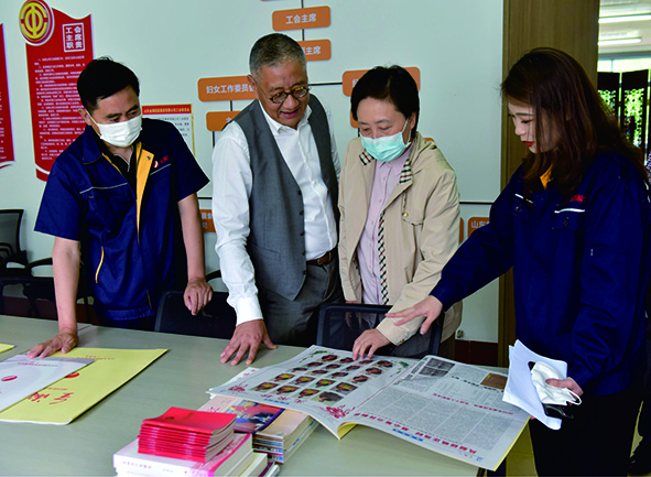 金潮控股集團公司董事長程紹華,工會主席、公司董事彭殿坤等人員陪同有關領導實地參觀了企業(yè)黨建展廳、職工之家、職工文體中心等活動場所。董事長程紹華介紹了金潮控股集團公司和下屬企業(yè)的發(fā)展概況,以及開展安全生產、疫情防控、工會組織建設、關愛職工、愛心捐助等情況。市有關領導充分肯定了金潮控股集團公司面對疫情和復雜的經濟形勢所采取的應對舉措,對在疫情防控期間免費為小區(qū)業(yè)主提供生活物資,以實際行動踐行“立業(yè)為公,執(zhí)業(yè)為民,民本報本”企業(yè)使命的舉動表示贊賞;對企業(yè)落實安全生產各項措施,投入大量資金加強工會基層組織建設、改善職工活動場所、創(chuàng)新開展服務職工活動等工作給予了高度評價。