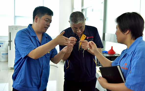 第二站,金潮控股集團(tuán)參訪團(tuán)在招金膜天總經(jīng)理張偉政、副總經(jīng)理王克乾、副總經(jīng)理王軍波等領(lǐng)導(dǎo)的陪同下,詳細(xì)了解了企業(yè)發(fā)展歷程,參觀了招金膜天的生產(chǎn)現(xiàn)場、自動化卷膜線、膜技術(shù)研究院等,招金膜天堅持持續(xù)創(chuàng)新,掌握包括膜法飲用水凈化、市政污水處理MBR提標(biāo)改造,全膜法中水回用、苦咸水和海水淡化、工業(yè)給排水處理等等關(guān)鍵核心技術(shù),將微濾、超濾、MBR、反滲透等膜技術(shù)集成應(yīng)用化,以技術(shù)研發(fā)支撐產(chǎn)品創(chuàng)新贏得市場。招金膜天30多年來對事業(yè)的無限執(zhí)著,對創(chuàng)新的不懈追尋,走出了一條獨特的創(chuàng)新發(fā)展之路,觸動著金潮控股集團(tuán)參訪團(tuán)的所有干部。